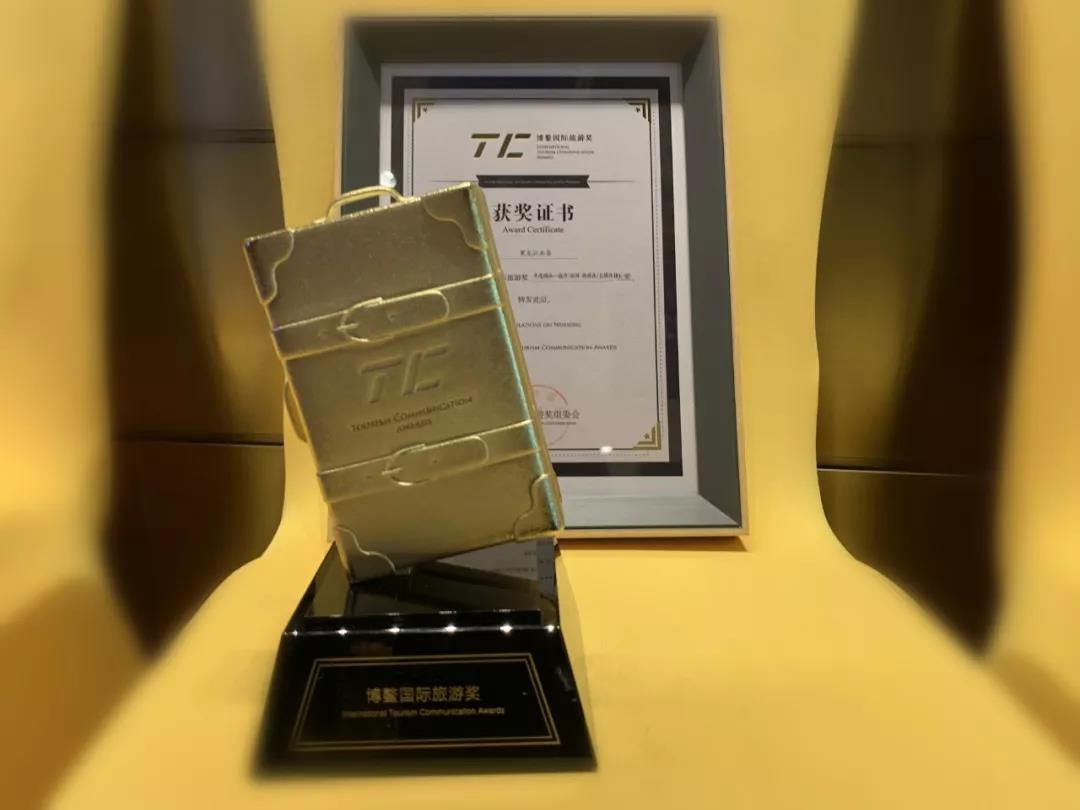 TC奖“年度媒体—城市/旅游 新媒体/自媒体榜 ”《黑龙江头条》奖杯及获奖证书。PIC/黑龙江头条