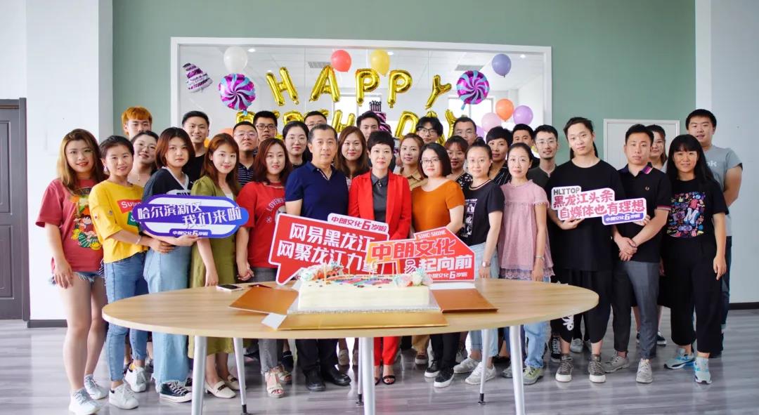 中朗文化6周年生日会,部分员工合影留念。