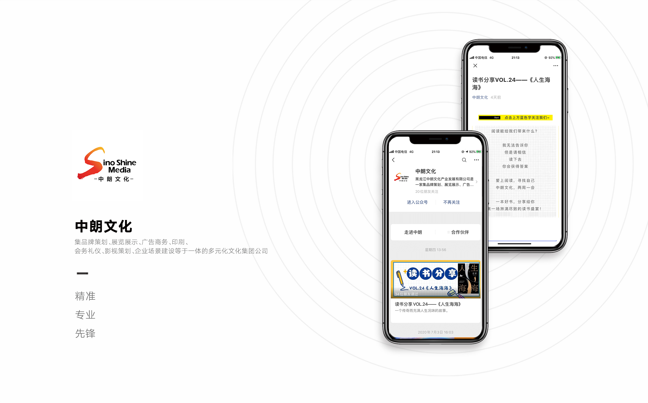 为政企提供品牌定位分析、新媒体视觉设计、互联网平台搭建、微信订阅号|服务号内容运营、营销活动策划、创意平面、创意互动H5制作、渠道推广投放等公共关系服务解决方案,打造城市形象传播运营中心。