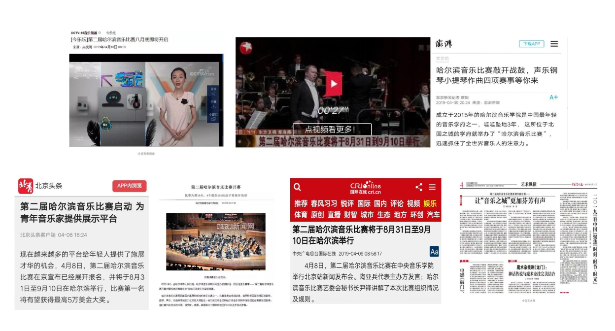 比赛开幕式在现场采用了5G技术进行直播传送,同时保证4K画质,观众不仅能够收听到顶级的交响乐作品,跟能 看 到最清晰的画面,真正实现了一场视听盛宴!近30余家国内知名媒体争相对开幕式现场进行了报道,共计100余万 人通 过新浪、新浪微博、黑龙江网、约大师等直播平台共同感受了开幕式盛况。